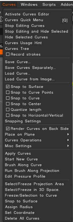 The Curves menu can be used in all workspace, making it a powerful and very versatile tool.