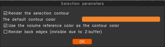 Edit Contour Selection Parameters: Select type of color assigned to selected Volume, and contour visulization on viewport.