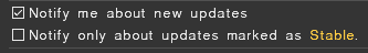In Preferences > General Tab, you may tell to be notified only about stable updates. And you may turn off notifications if needed.