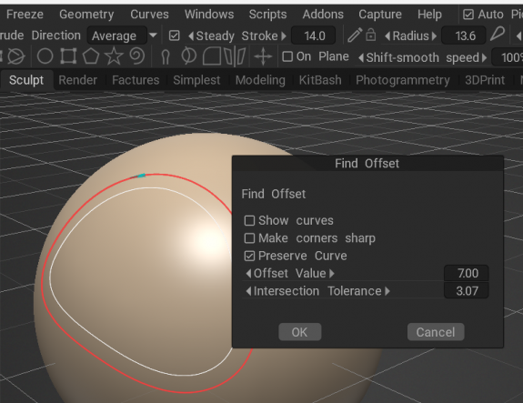 After the “Tool Options dialog” appears, you need select 2-d guide and curve profiles. The new item in Sculpt tree will be created, and the mesh will be placed there.
