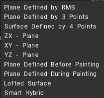 The Type of Surface show modes by which you decide the position of the brush: