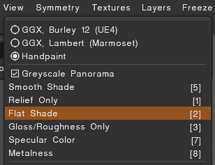 - Channel separation: While you paint, you can toggle between viewing different channels, such as just the color, glossiness, or metalness, to isolate and check each one individually.