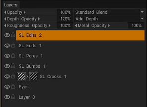 I need to also mention that the layer panel is exactly the same that you find in the paint workspace and it stores color, glossiness or roughness, metalness and depth. And in the depth channel, 3D coat is storing all your deformation changes. You never have to turn on a recording. 3DCoat’s just storing that information continuously throughout the sculpting process.
