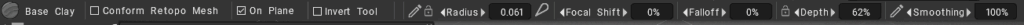 Falloff: This allows you to control the brush with a falloff curve, giving tighter control over the radial area the brush will affect depth.