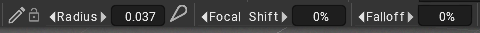 You can also collapse/expand settings on the toolbar, such as Falloff, Depth, etc. This can be done by clicking in the immediate area around the setting you wish to minimize. The image here shows the area to click to achieve this.