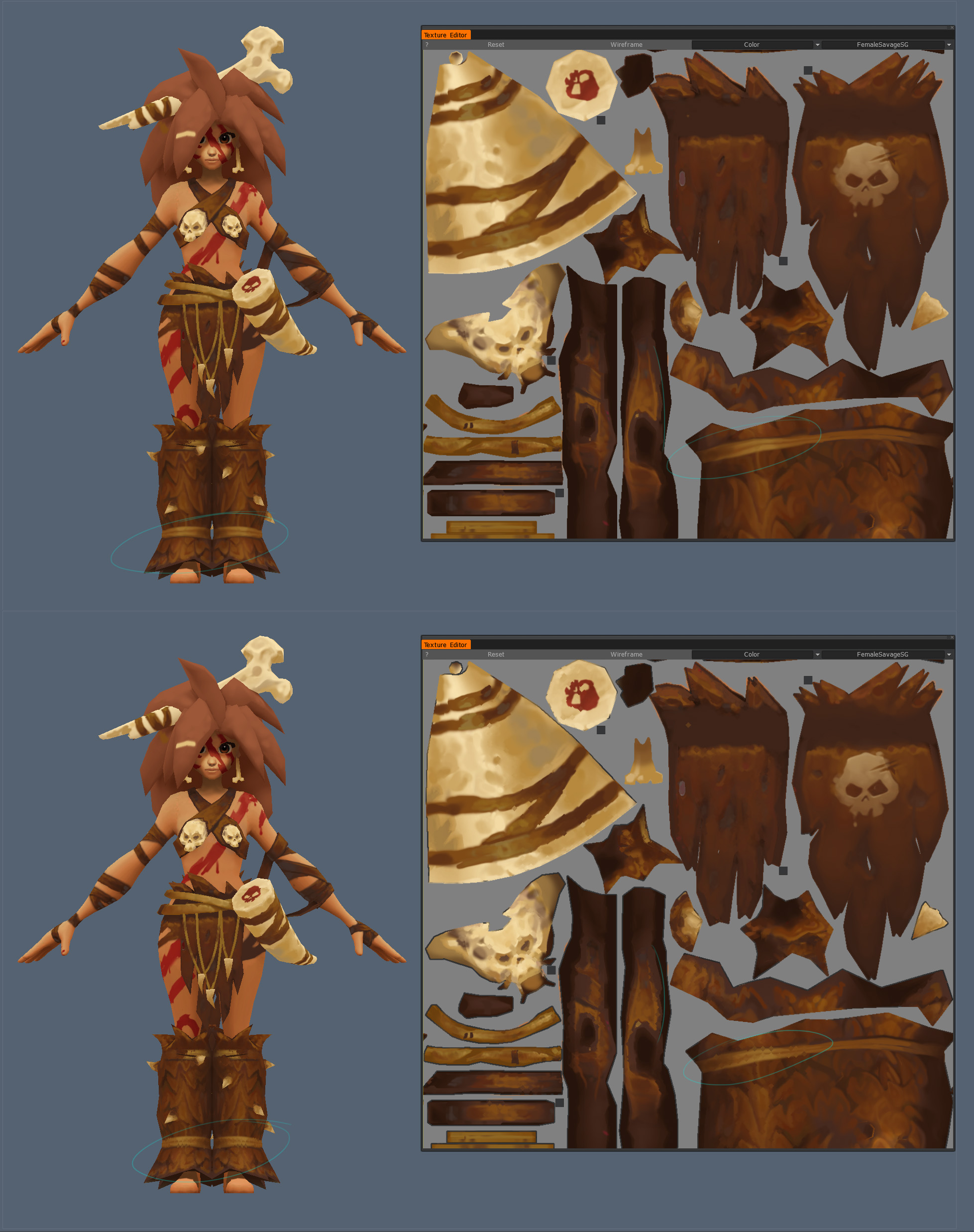 Encountered this today during one of countless external editor sessions: The upper image is pre-edit. The one below shows the texture as it came back from PS. There are numerous pixelly distortions (circled in blue), all were created when the texture was sent to PS from 3DC. Solution was re-import theOBJ and reassign the textures, but still... This thread would typically go in the paint mode bugs forum, but that has not been updated for 2 years so... I also made a thread in 'features' forum which I intended to keep udpate but I am unable to reply to my own thread, I guess it was locked? if a mod can chip in here it would be nice