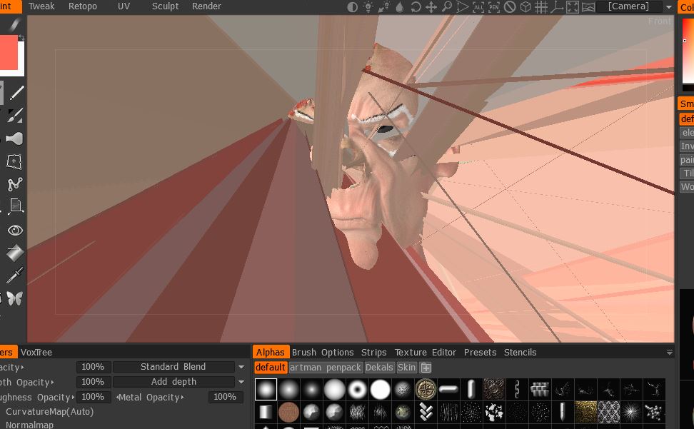 There is a bug affecting every model I create. It's really inconsistent. Sometimes when I undo or smooth, or turn symmetry off, it corrupts my mesh and is irreparable. It basically causes he mesh to have zero width on some part of it. I can't even undo to reverse the changes and hope to god that I have saved a recent backup. See attachment to view what happens. Notice the top part of the model's head that looks like its see through and pixelated almost.