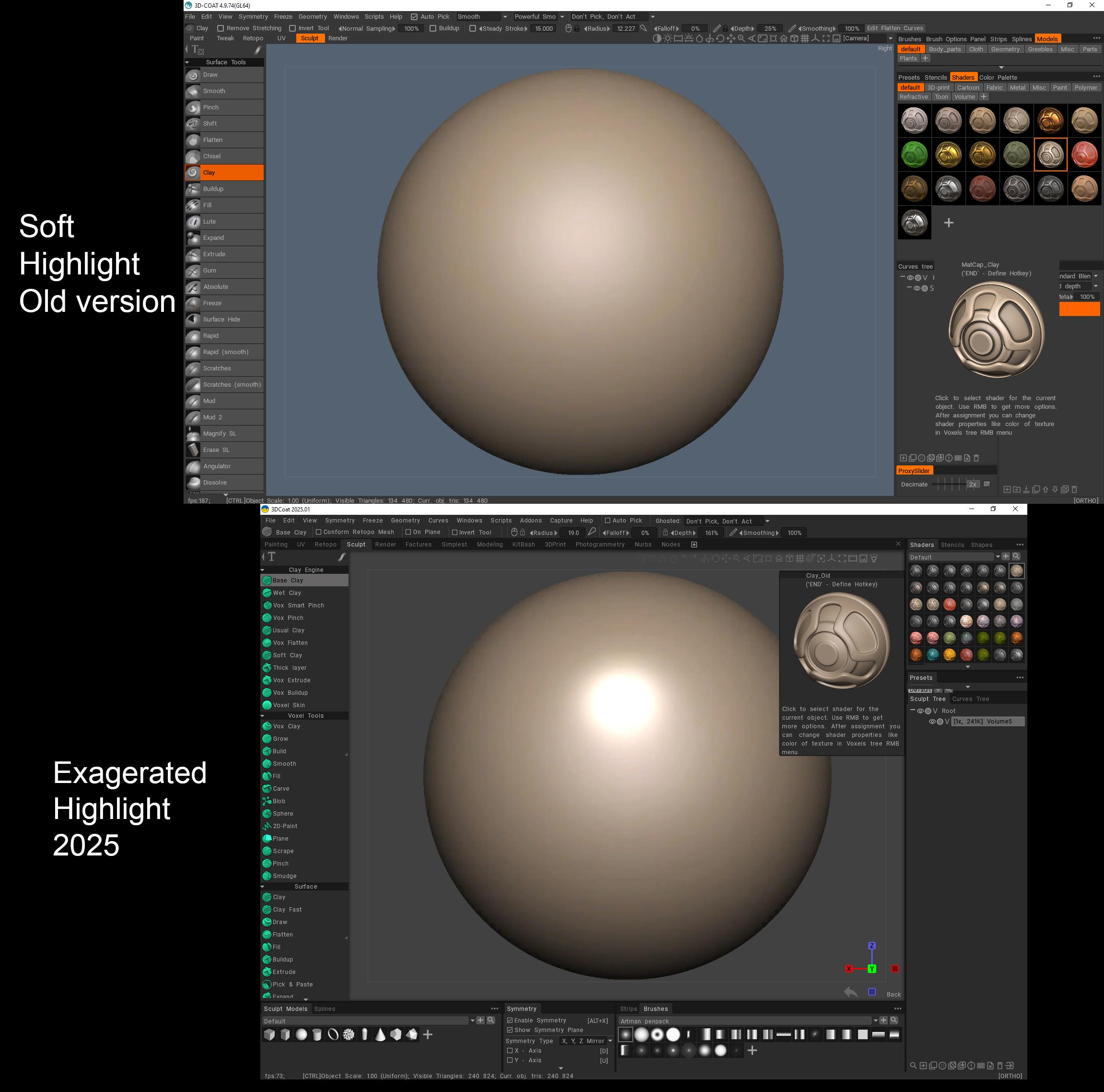 Hello, I was using a very old version of 3DCoat on my laptop and noticed that in the viewport of the old version there is no added highlight on top of the shader/meshes.