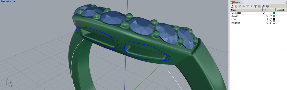 This may be a pretty basic question but I figured I'd ask here. I work primarily with Rhino 3d and render with Vray for rhino. Because rhino 3d relies on surface modeling, you can group and and set surfaces to be on different layers, and you can apply various materials to a design via the layer names. When I import a 3d coat model to Rhino, it comes in as one single mesh and so I can only apply 1 render material to the model. How to I isolate areas of a mesh so that I can use multiple layer names for rendering in rhino vray? In the screen shot you can see one solid mesh and I want to make the inner parts I circled a different layer so I can render with two different materials, any suggestions? Thanks