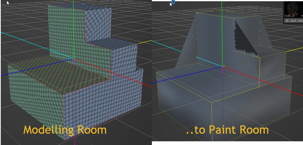 I built a model in the modelling room, UV'd it and now I want to paint it. But how do I send it to the paint room?