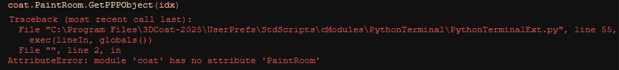 Advanced Member MJonathan Posted Wednesday at 11:48 PM Advanced Member Share Posted Wednesday at 11:48 PM 3DCoat2025.15 has python issues! 1- Python console is lagging when starts to writing code. 2- I can't access to the PaintRoom methods. Quote Link to comment Share on other sites More sharing options...
